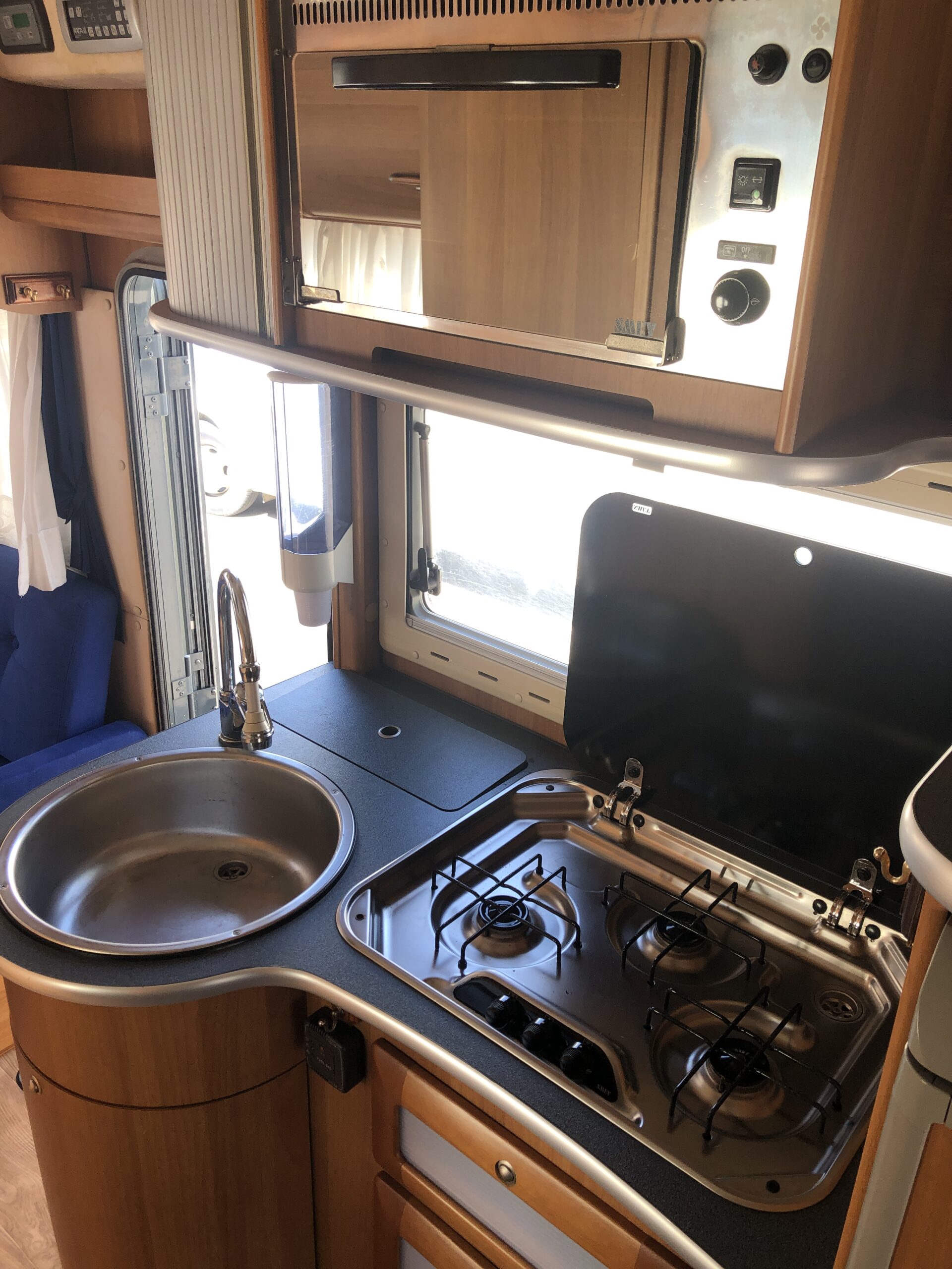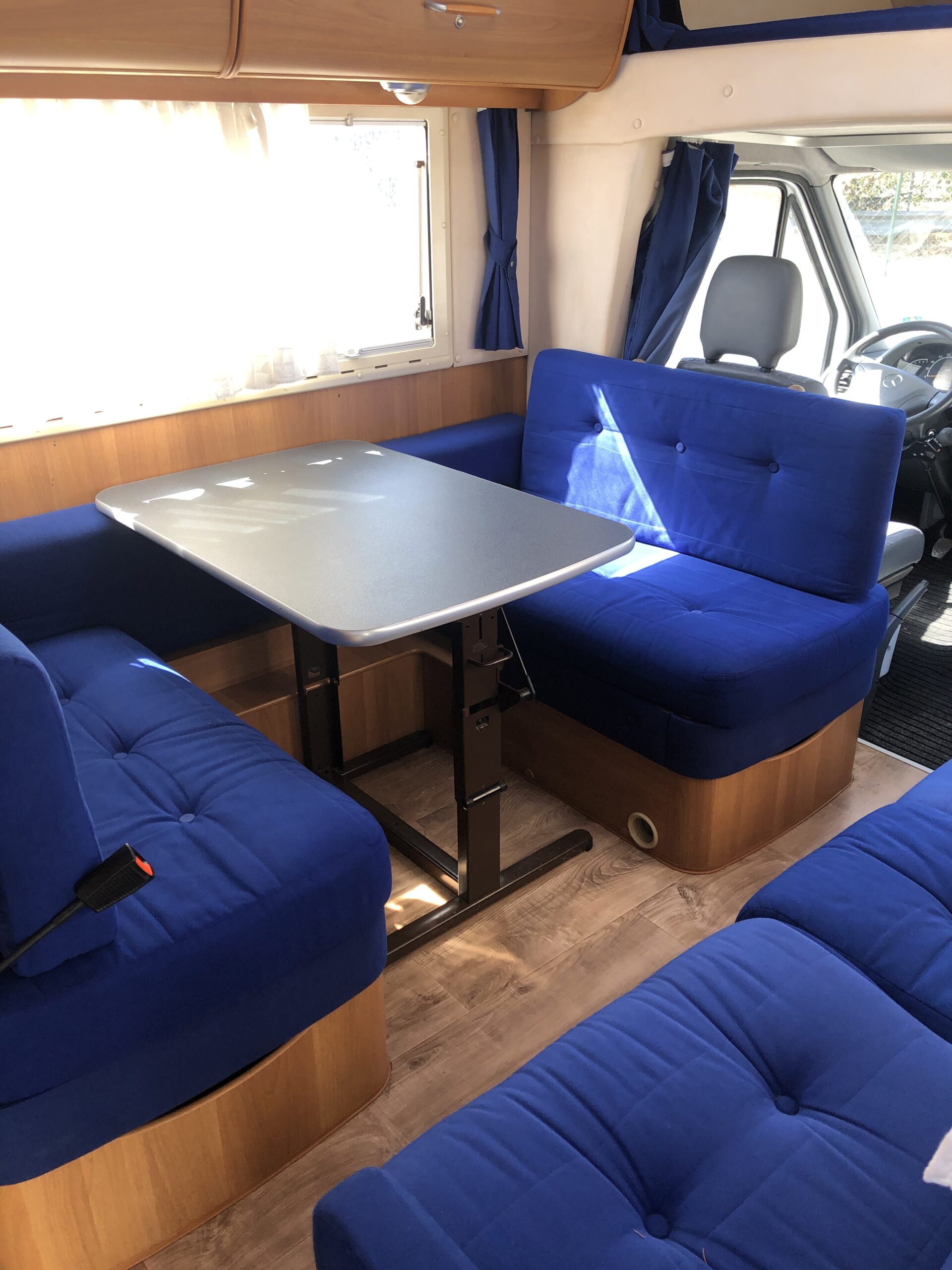 Ha un gavone a volume variabile sullo spazio del letto singolo posteriore. 6 posti letto, 5 posti omologati, è dotato tendalino, bagno con doccia interna separata, riscaldamento tramite stufa Trumatic, portabici 3 posti, 2 serbatoi per le acque chiare. In cucina forno a gas, 3 fuochi, lavandino, catino per la raccolta degli scarti, pattumiera, raffrescatore.