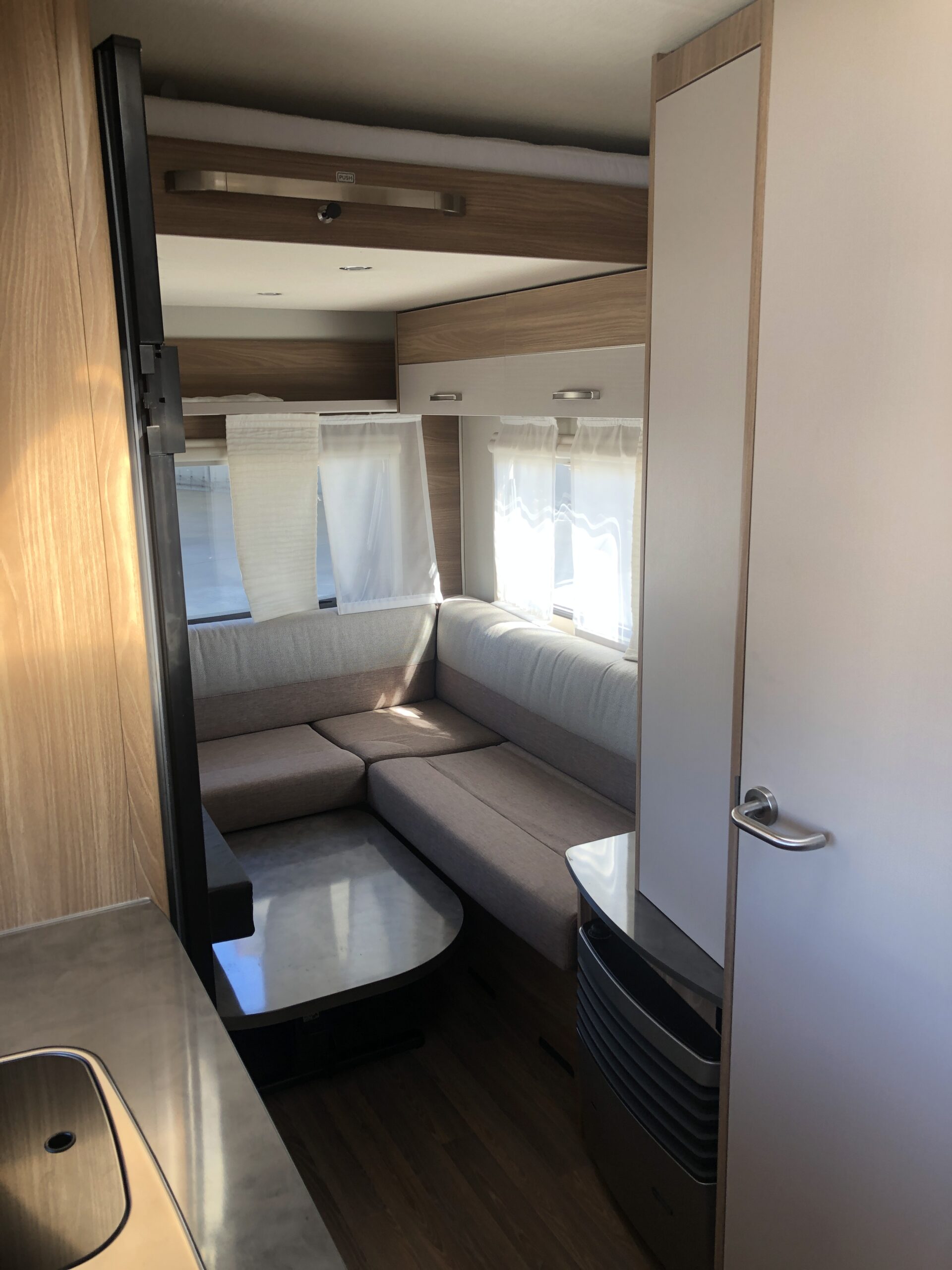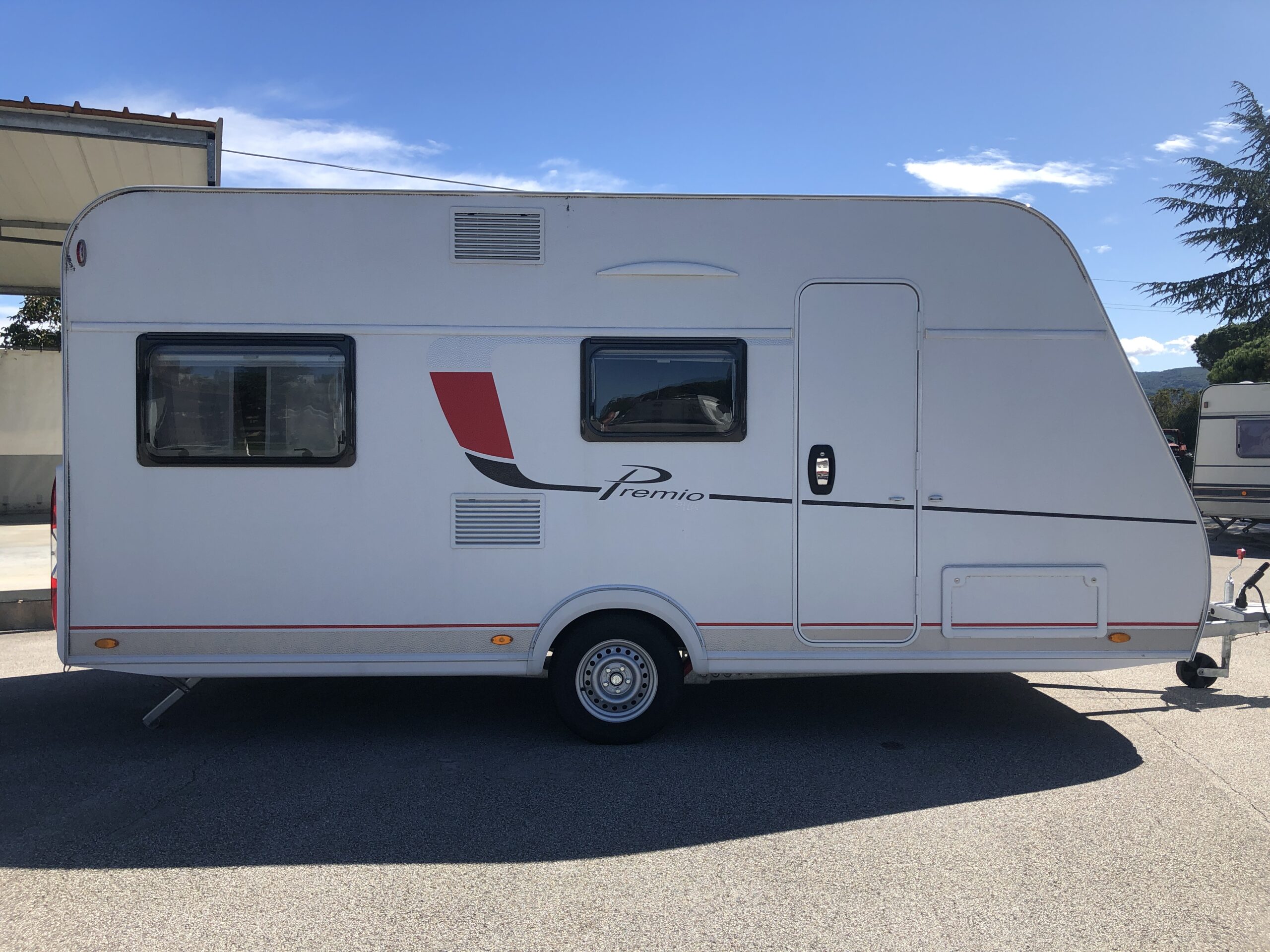 Bürstner Premio Plus 440 TK, 6 posti con letto matrimoniale basculante sopra la dinette. La caravan è molto luminosa e compatta, si presta in maniera ottimale sia per vacanze non stanziali sia per campeggio.