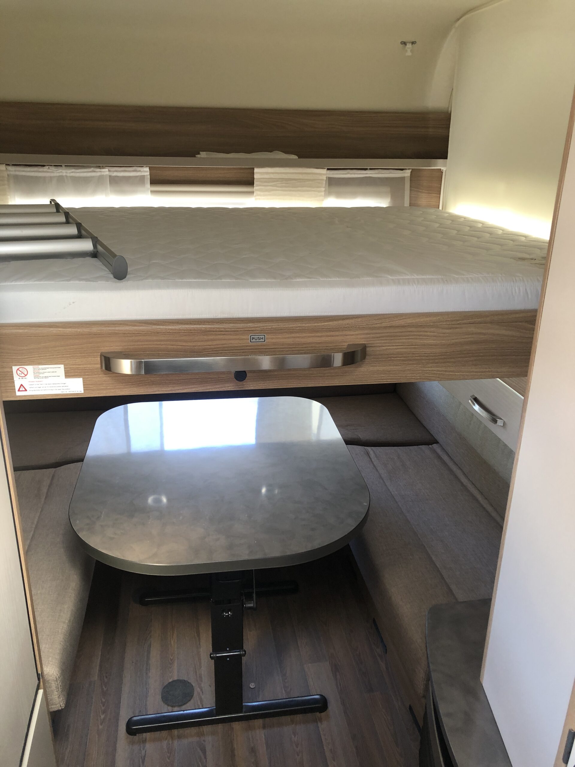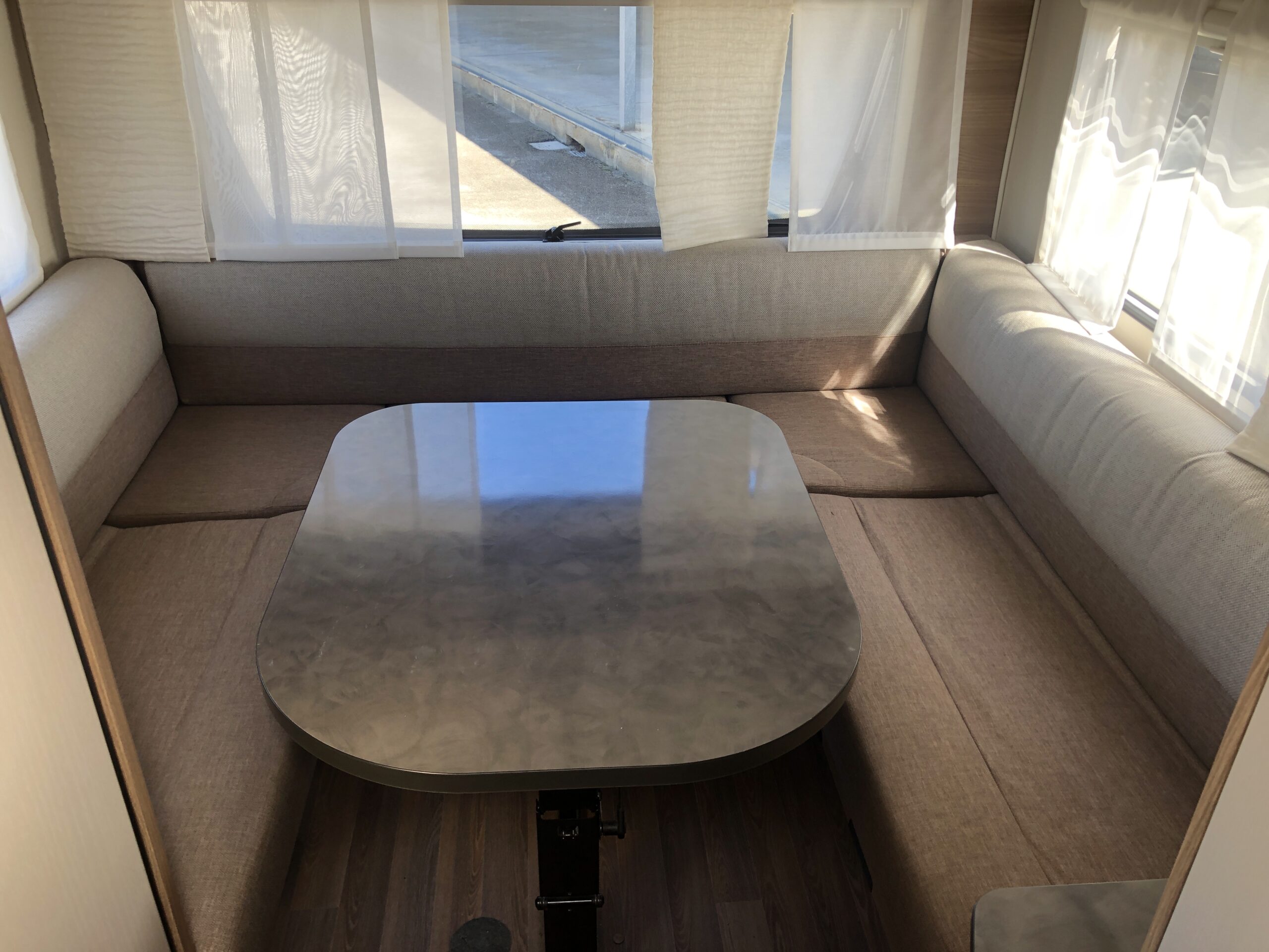 Bürstner Premio Plus 440 TK (usata) ha la dinette circolare, anch’essa trasformabile in un letto matrimoniale, è molto ampia e confortevole. Completa la dotazione di posti letto un letto a castello con due posti, con finestra.