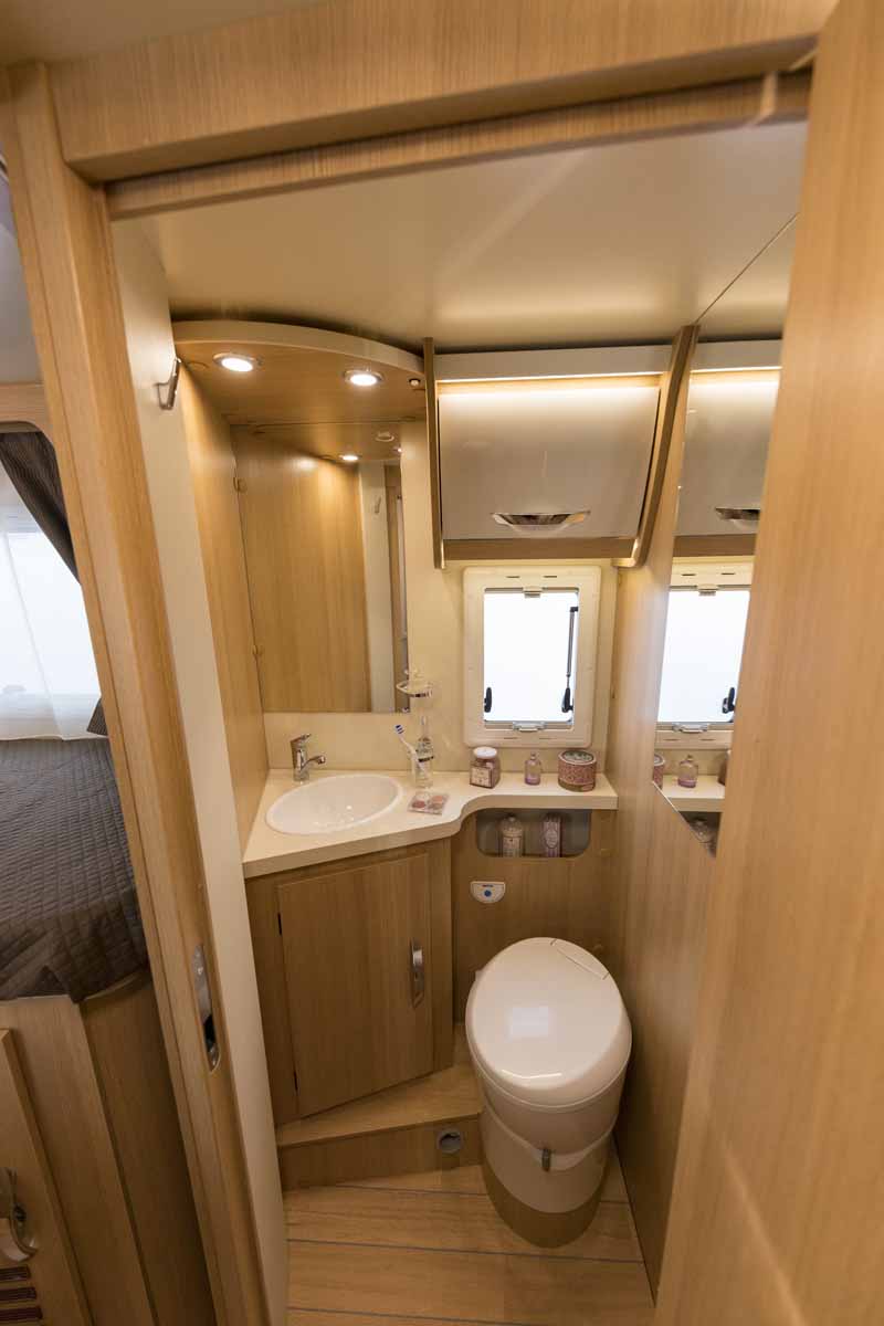 Il bagno è molto spazioso, con una doccia interna separata. La cucina ha 3 fuochi ed un frigorifero da 142 litri.