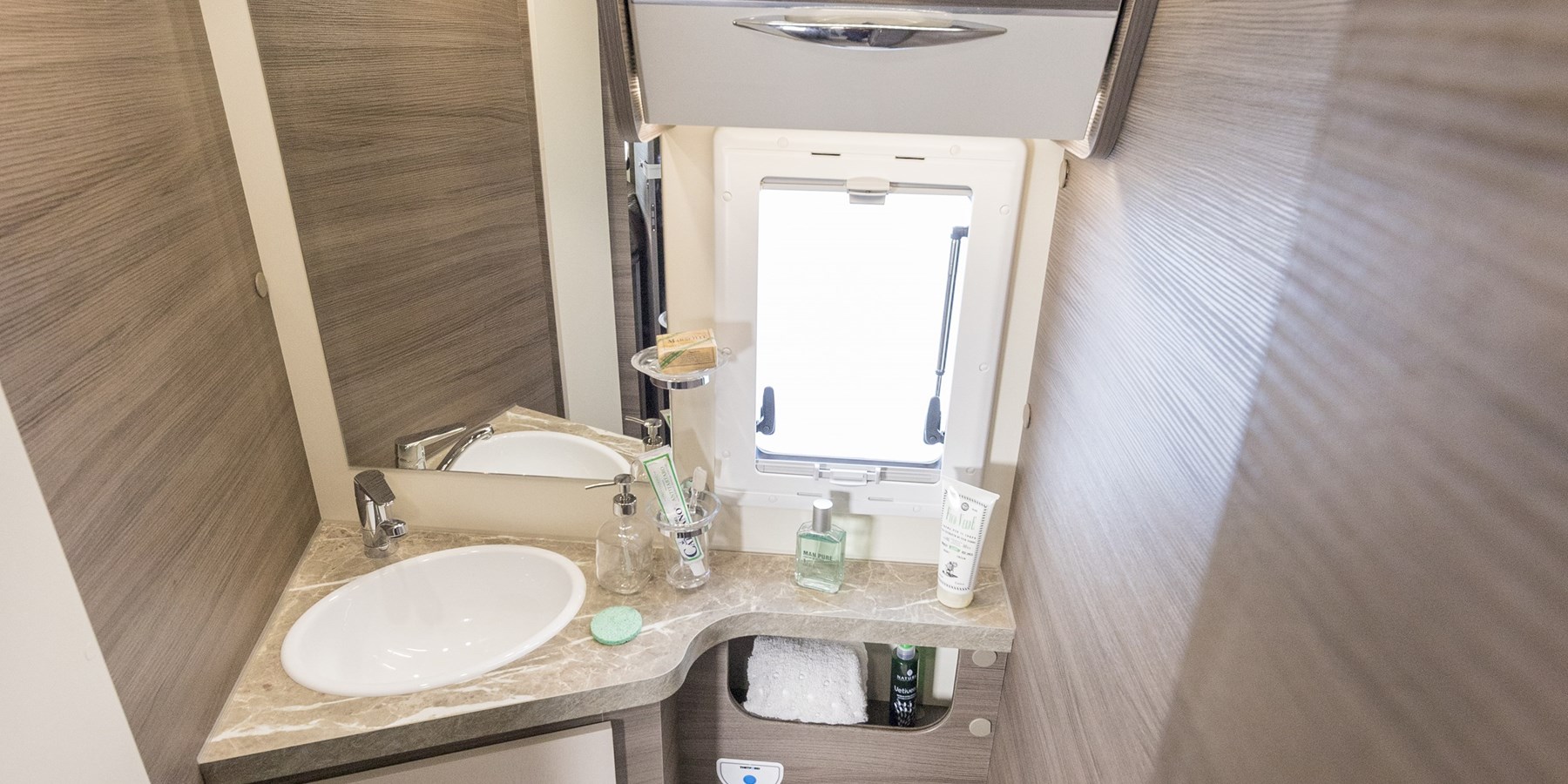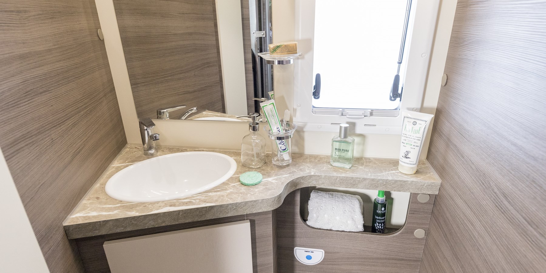 Il camper McLouis Mc4 881 ha un bagno molto spazioso e comodo è separato dalla doccia. La “zona notte” è separata da una porta dalla “zona giorno”, la cucina è spaziosa, con 3 fuochi ed un frigorifero da 149 litri. Perfetto per una coppia che vuole la comodità di avere sempre disponibile contemporaneamente la dinette ed il letto.