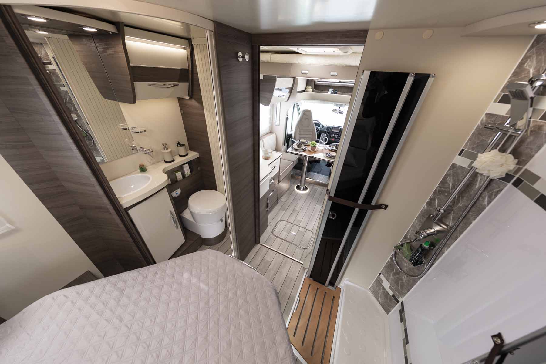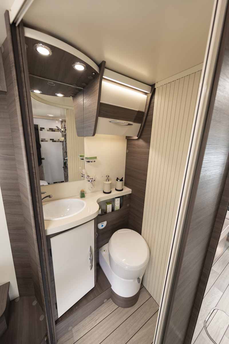 Il semintegrale McLouis 872 è uno dei migliori camper con letto matrimoniale nautico posteriore. Ha il bagno separato dalla doccia, un letto basculante matrimoniale aggiuntivo sulla dinette face to face anteriore, anch’essa trasformabile, volendo, in letto singolo.