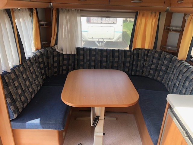 Caravan Knaus Sport 465, una roulotte bellissima ed in perfette condizioni. 4 posti letto : un letto matrimoniale alla francese, una dinette matrimoniale a ferro di cavallo.
