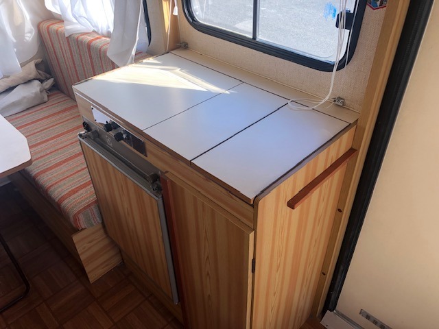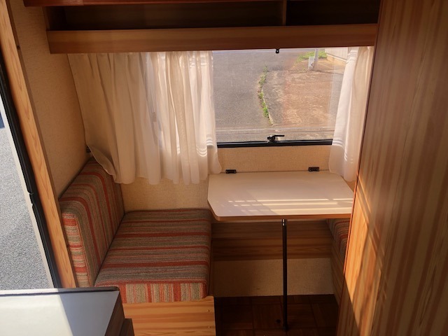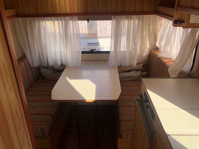 Con doppia dinette ( una matrimoniale ed una singola), vano bagno con lavello ribaltabile, armadio, cucina con fuochi e frigorifero. Sopra la dinette singola si può applicare un’amaca per creare un posto letto aggiuntivo per un bambino.
