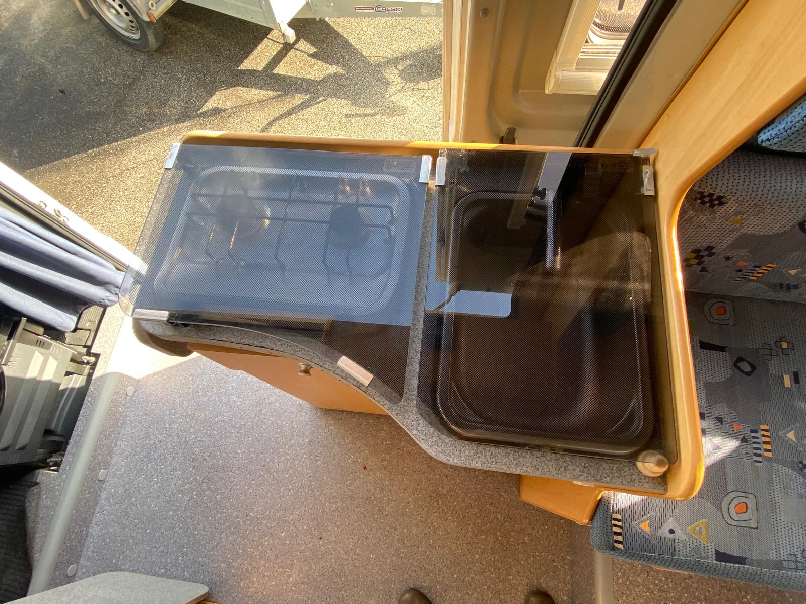 Con frigo trivalente, riscaldamento Truma Combi Gas, gradino accesso elettrico, oscuranti e zanzariere, oblò trasparenti, molte finestre, autoradio.