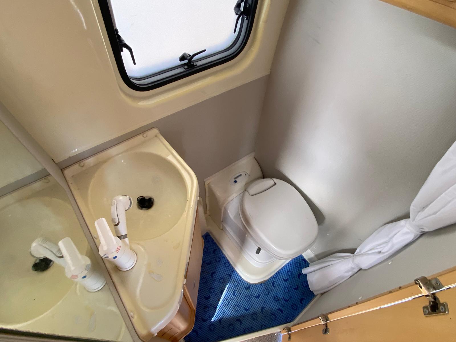 Il bagno è situato nella centrale del veicolo ed ha lavello, doccia e wc a cassetta.