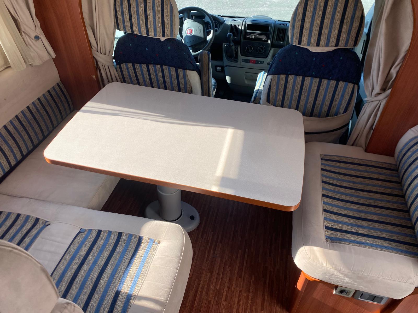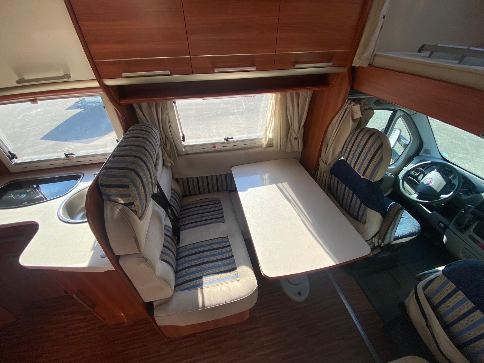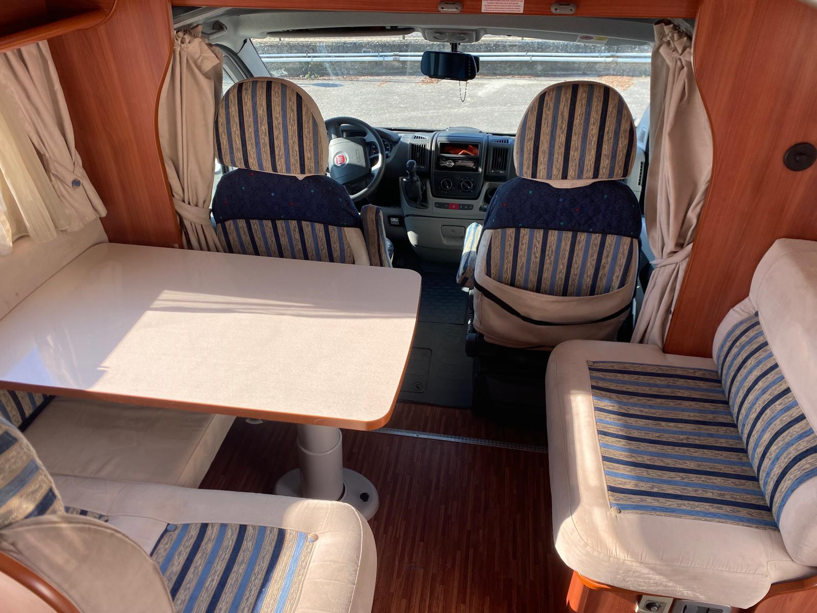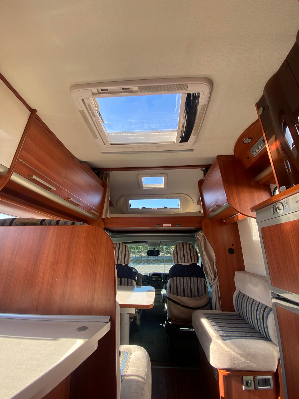 Il letto posteriore è trasversale è matrimoniale, sopra il garage, mentre sulla parte frontale c’è una dinette avanzata affiancata da un comodo divanetto. La mansarda è veramente spaziosa. Tutti gli oblò sono trasparenti e conferiscono al veicolo un’aspetto ampio e luminoso.