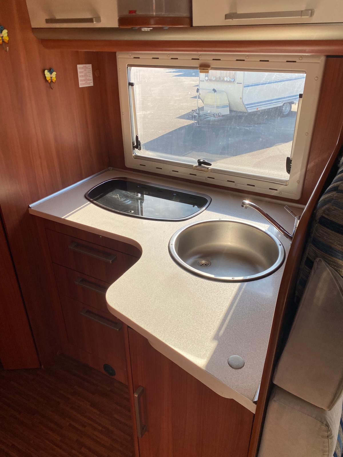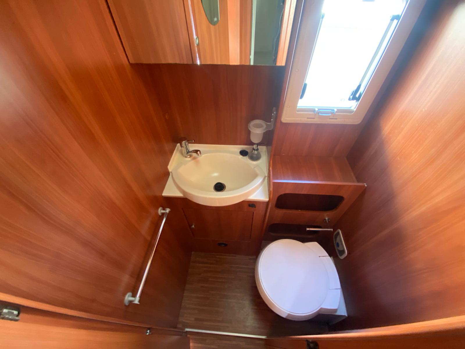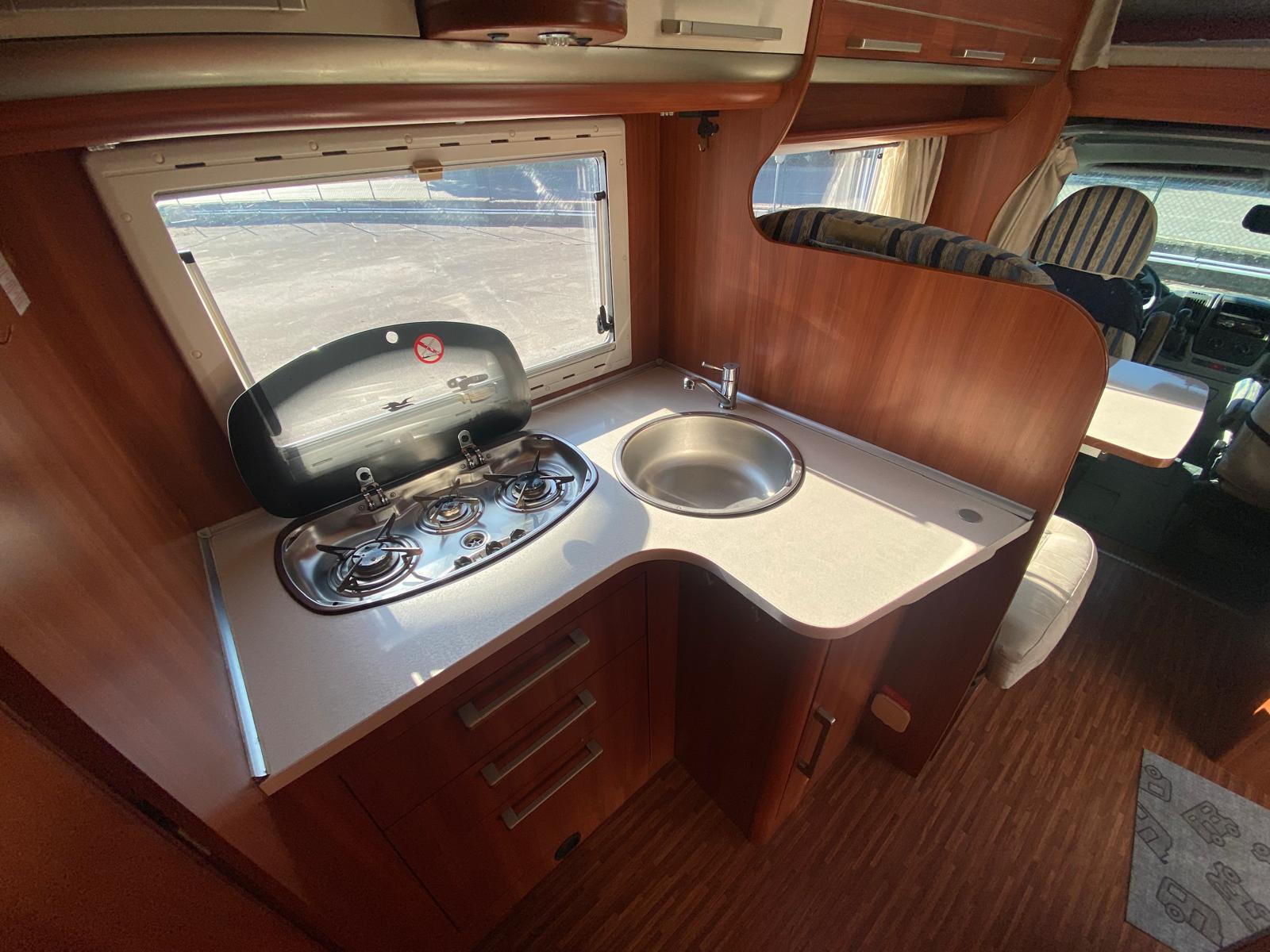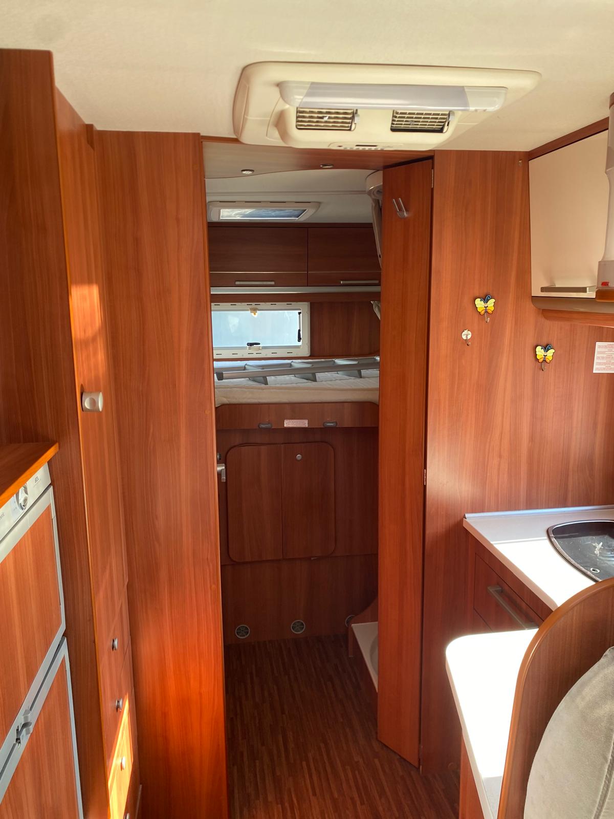 Il letto posteriore è trasversale è matrimoniale, sopra il garage, mentre sulla parte frontale c’è una dinette avanzata affiancata da un comodo divanetto. La mansarda è veramente spaziosa. Tutti gli oblò sono trasparenti e conferiscono al veicolo un’aspetto ampio e luminoso.