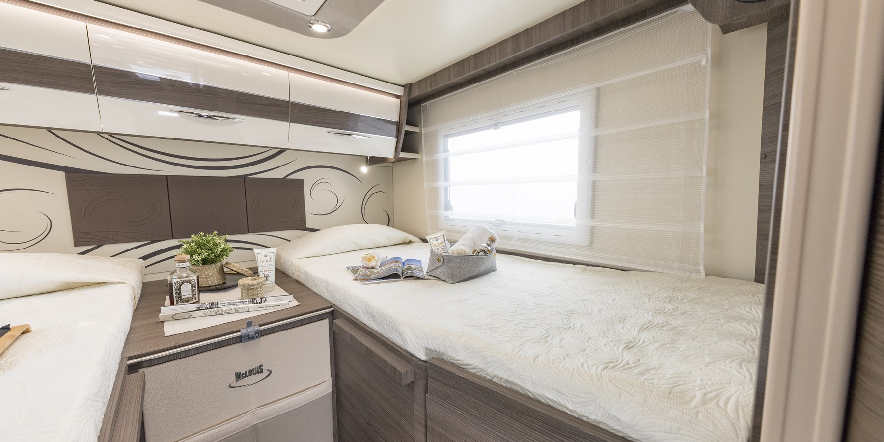 Mc4 865 semintegrale McLouis 2020 con letti gemelli che diventano un letto matrimoniale decisamente molto spazioso (mm 1820×2120).