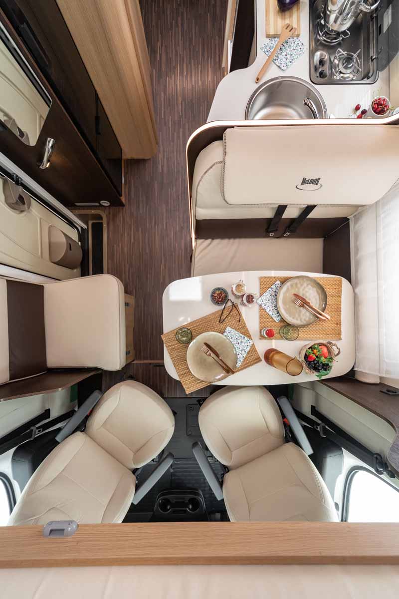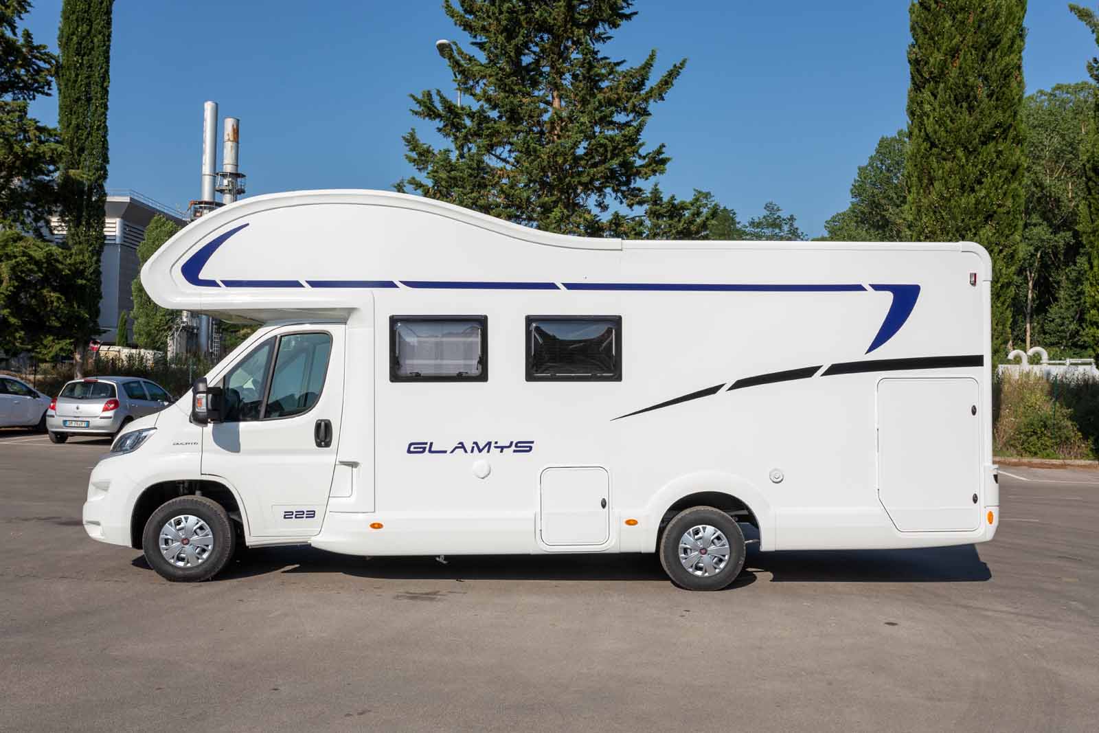 Il McLouis Glamys 223 mansardato stagione 2021 ha 6 posti letto (n. 2 letti a castello trasversali posteriori, il matrimoniale in mansarda e la dinette trasformabile in ulteriore matrimoniale), il letto inferiore dei letti a castello si trasforma in un’ulteriore dinette, ideale per lo spazio giochi dei bambini. Il bagno è con la doccia interna separate e la cucina è completa, con frigo trivalente da 142 litri.