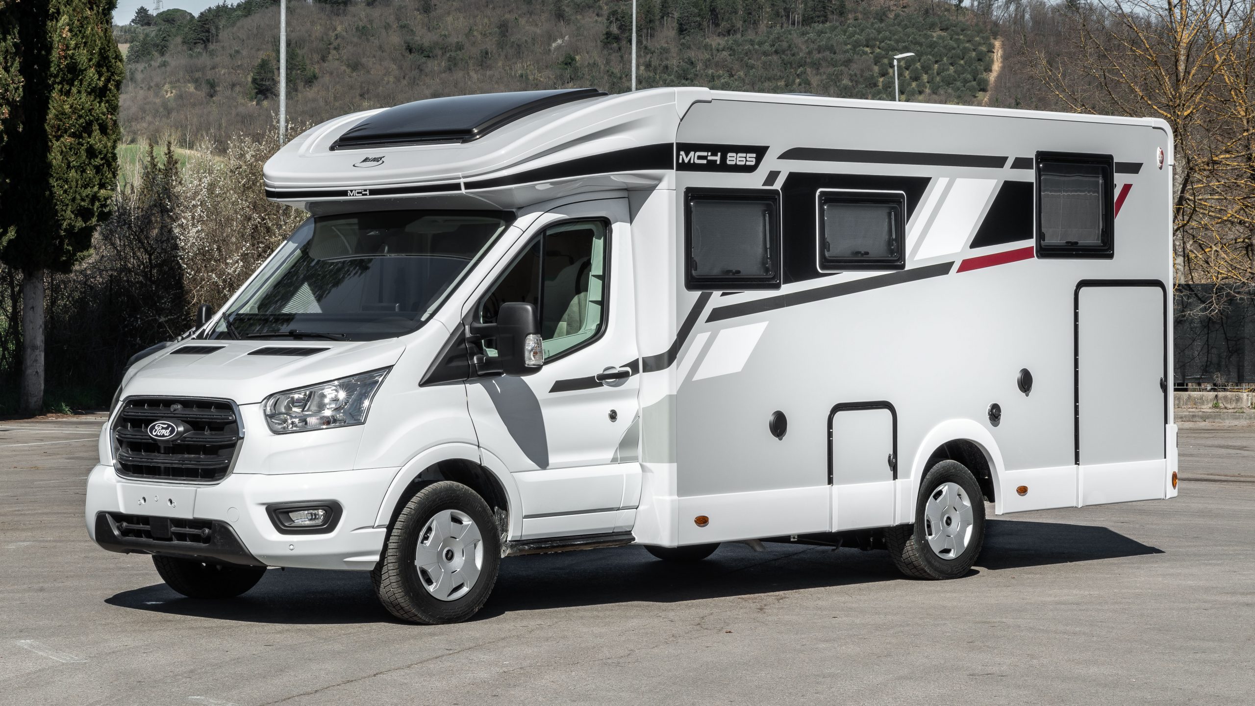 La nuova Serie 800 si distingue per un look contemporaneo e accattivante. Le pareti esterne Expedition Grey, in abbinamento a grafiche esclusive, donano al camper uno stile unico e dinamico. Il design posteriore è stato completamente rinnovato e integra eleganti fari full LED per una maggiore visibilità e sicurezza su strada.