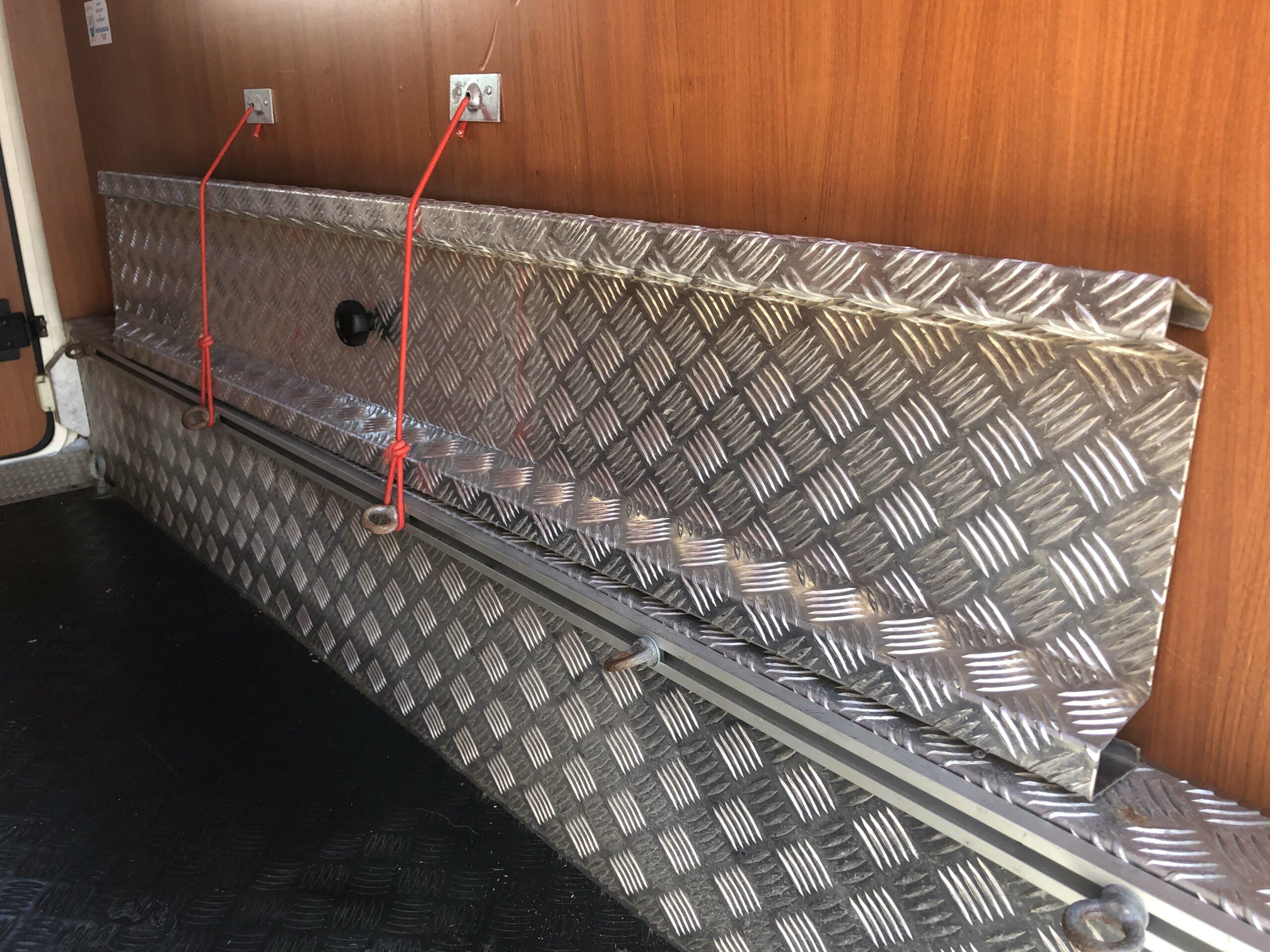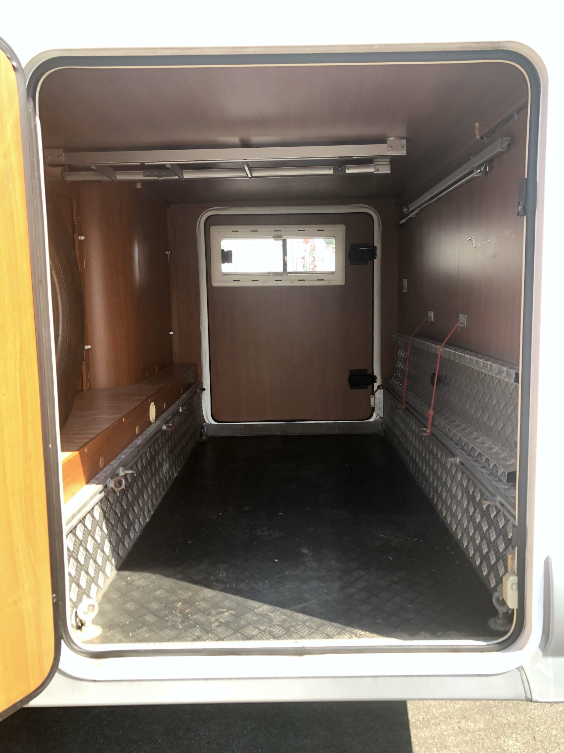 Il McLouis Tandy 636 ha un garage enorme, fornito già di ruota di scorta, rampa di carico, porta di collegamento con l’interno dell’abitacolo e piccola finestra su uno dei due portelloni laterali. Pannello solare nuovo, installato nel giugno 2020.