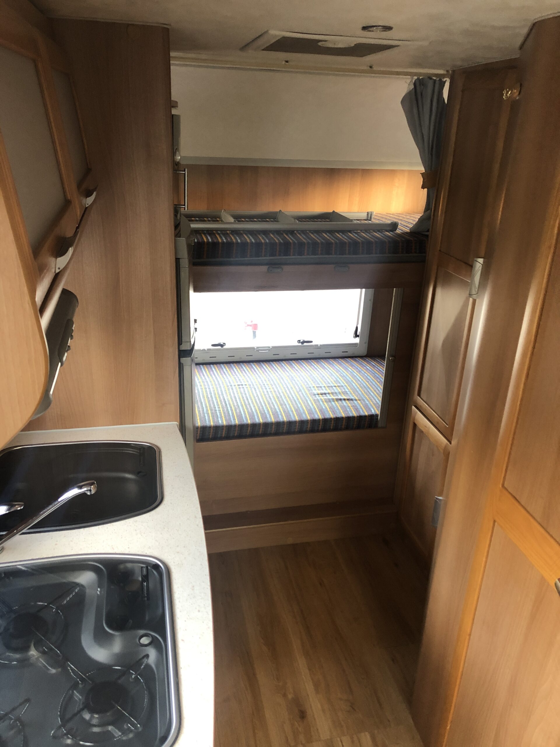 Nella parte posteriore trovano posto due letti a castello, mentre nella parte centrale ci sono due comode dinette, una da due posti, trasformabile in matrimoniale, e una singola.