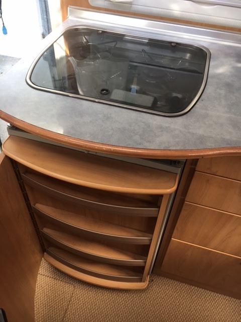 Completa la dotazione del camper un gavone sotto il letto posteriore accessibile anche da esterno.