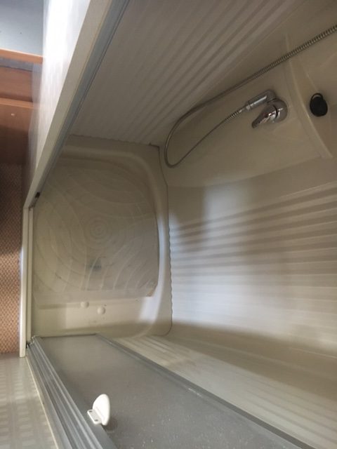 Il bagno situato nella parte posteriore del veicolo è molto ampio, con una doccia interna spaziosa e molto confortevole da garantire cosi anche un’ottima privacy agli occupanti.