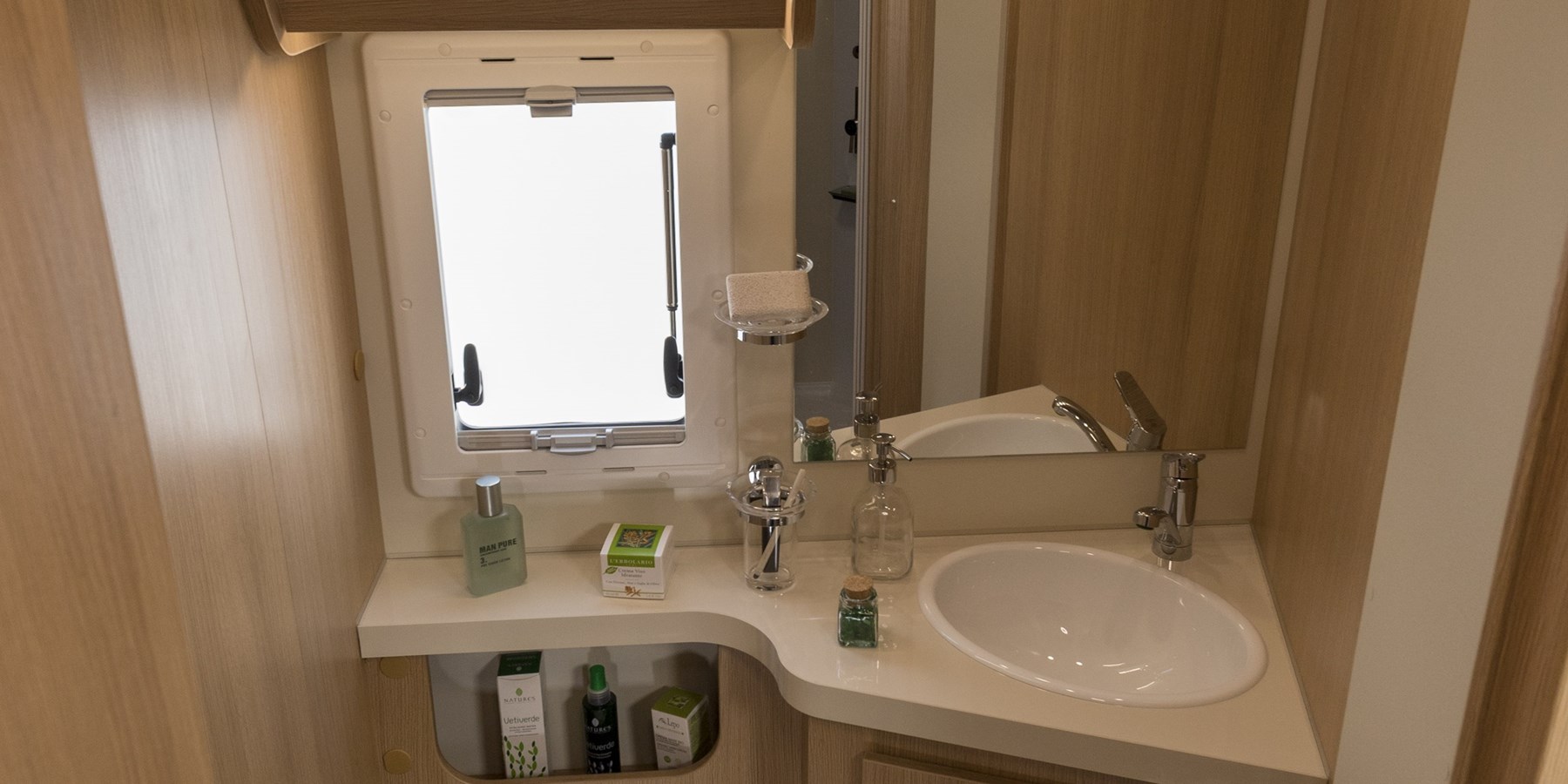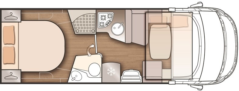 Il bagno e la doccia sono separati e molto spaziosi. Un motorhome versatile e dotato di tutti i confort, in uno spazio adeguato (7,41 m di lunghezza) racchiude tutte le comodità di un camper e dotazioni assolutamente eccezionali (come il letto nautico posteriore, comodissimo, un garage enorme con possibilità di variare lo spazio utilizzabile alzando o abbassando il letto dell’abitacolo, un grande frigorifero trivalente con doppia porta, ghiacciaia e grande vano frigo, e la grande doccia, separata dal bagno).