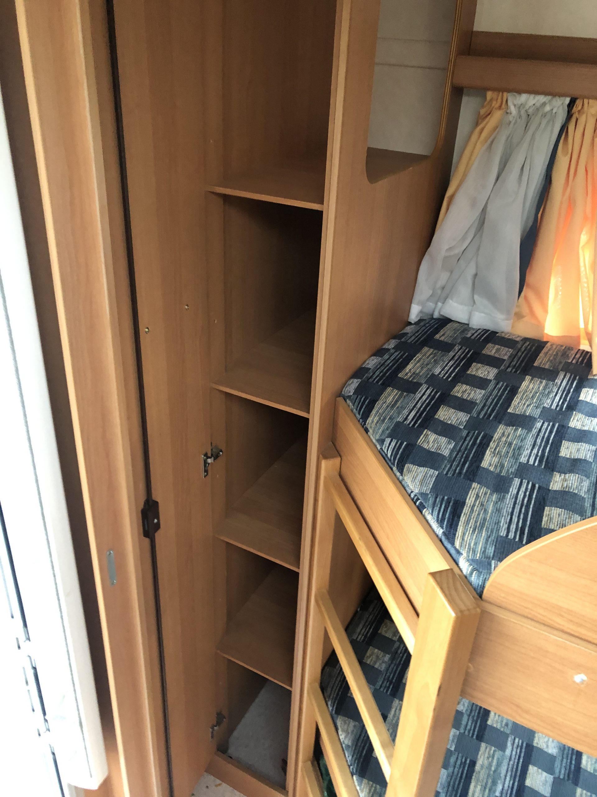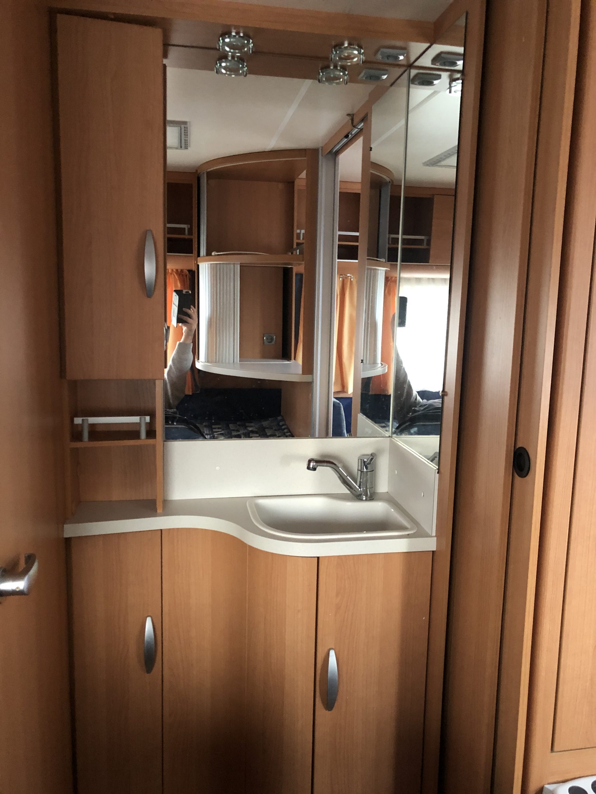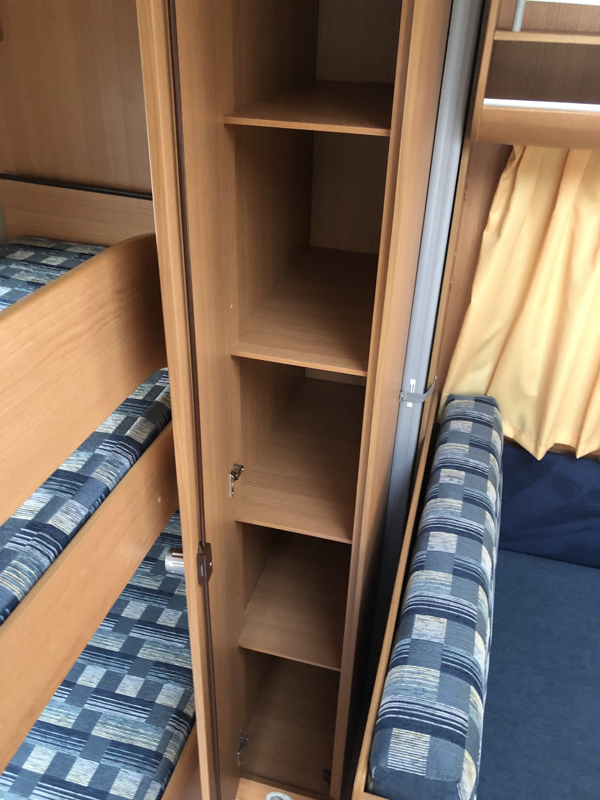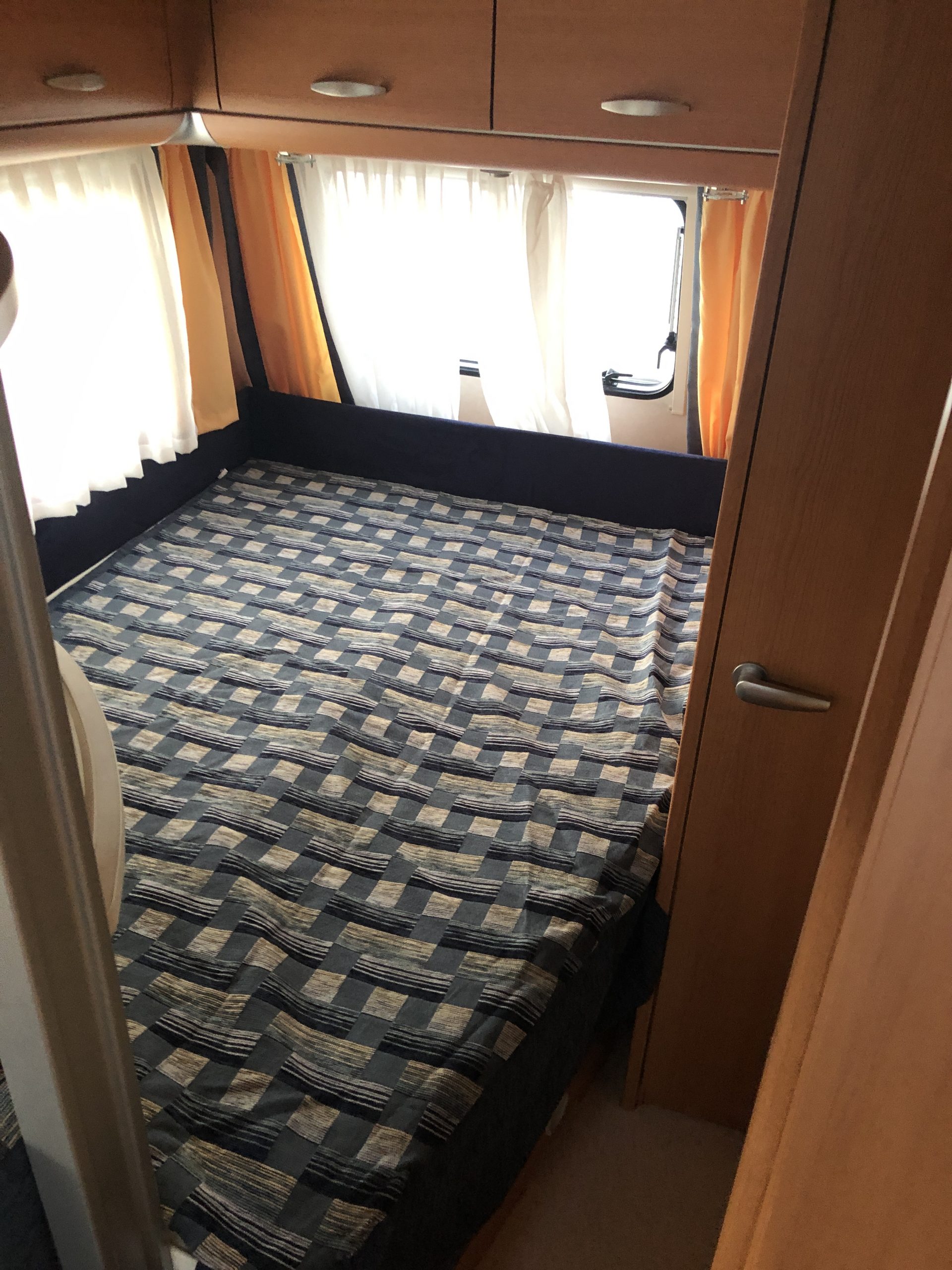 Per quanto riguarda stoccaggio e armadi abbiamo un grande armadio centrale con appendiabiti, due armadi con scaffalature molto capienti e vari spazi di stoccaggio sotto le sedute della dinette e sotto i letti (lo spazio sotto il letto matrimoniale alla francese è raggiungibile anche da fuori.