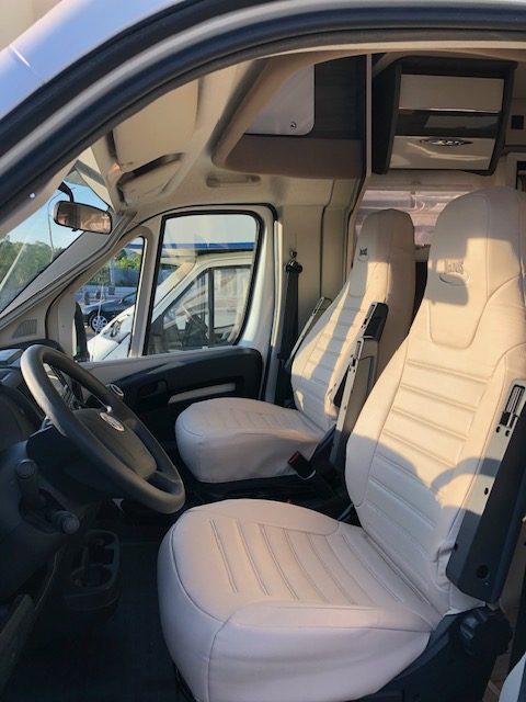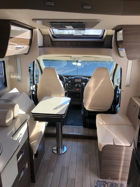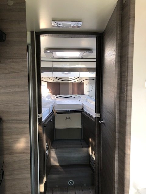 Veicolo con dinette centrale face to face, basculante anteriore matrimoniale con movimento elettrico, due grandi armadi sotto i letti gemelli, ottimo per tre/ quattro persone. Accesso scocca per mezzo di un comodo gradino doppia pedata interno, zanzariera sulla porta di ingresso, su tutte le finestre ed oblò. Oblò panoramico.