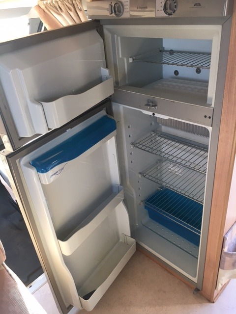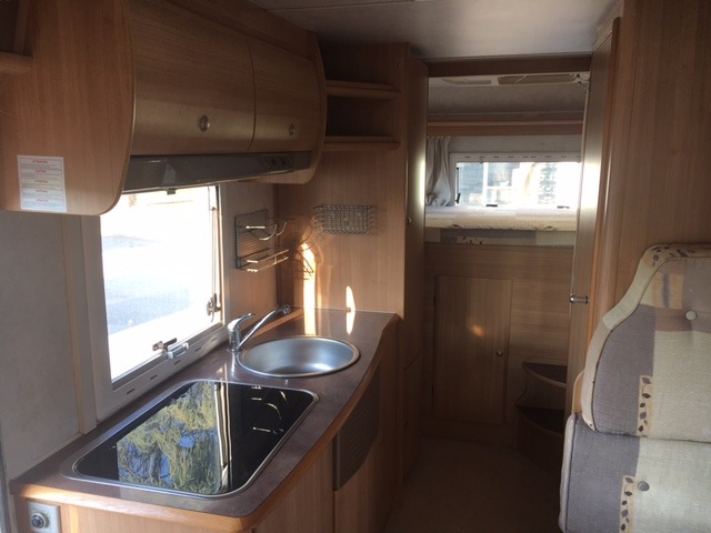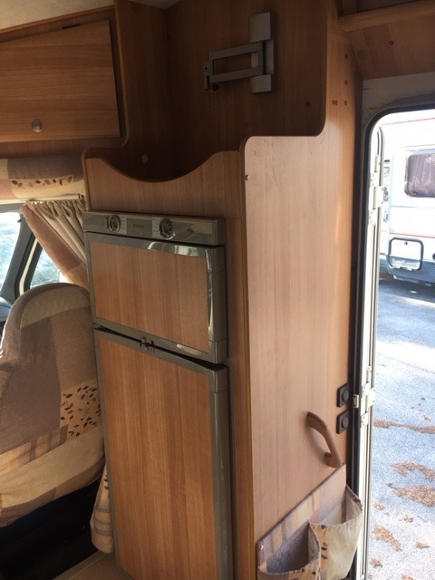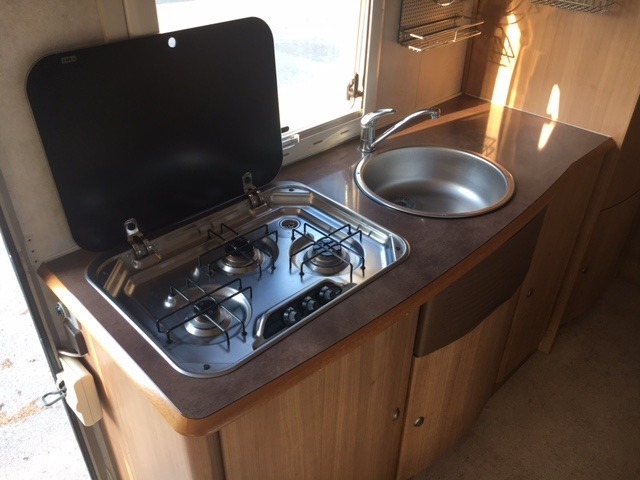 La cucina è dotata di frigorifero trivalente doppia porta Dometic, piano cucina molto ampio provvisto di fornello a 3 fuochi, un comodo lavandino ed ampio piano di appoggio.