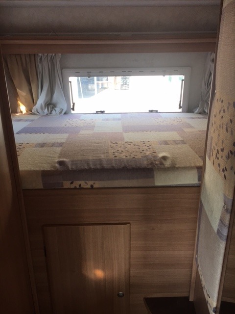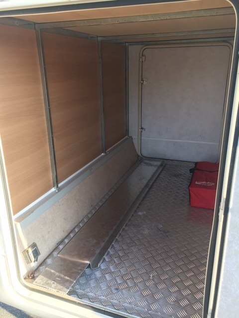 Sotto il letto posteriore c’è il garage a porte simmetriche, veramente molto ampio, per caricare tutta l’attrezzatura di cui si ha bisogno. Trova spazio anche una moto o scooter . Si accede allo spazio anche dall’interno.